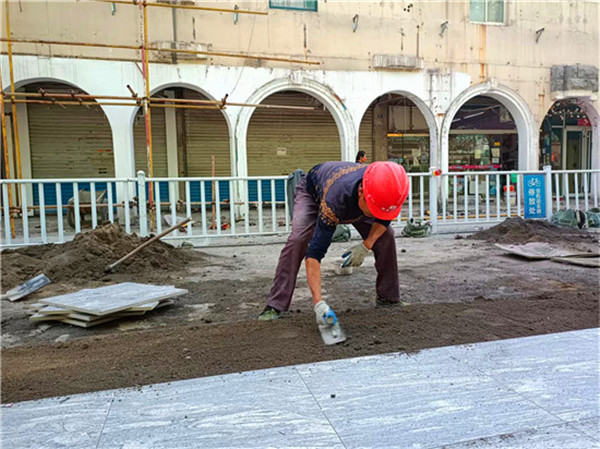 9月8日上午,记者来到淄博新世界贸易街位于华光取商场西之间的城市焦点地段一探新世界贸易街环境。从施工现场领会到,目前淄博新世界贸易街处于半封锁施工形态,行人和骑电动车能够姑且通行,贸易街西侧的外墙立面曾经完成,工人师傅正正在拆卸脚手架,两头正正在铺大理石面,叉车正在来回功课,一派忙碌气象。